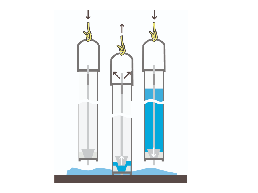 La estructura del modelo de Fondo, no recolecta hasta tocar el fondo del tanque. En ese momento realiza la apertura e ingresa el líquido.